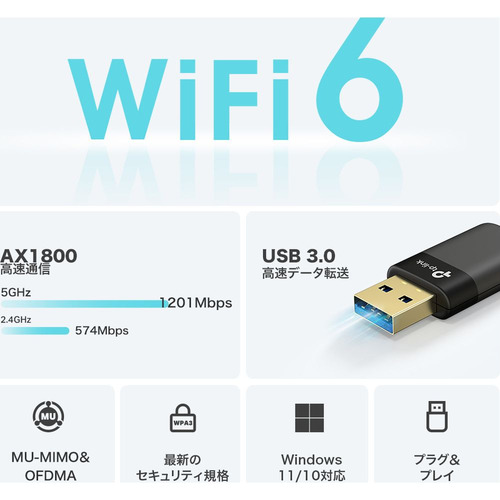 TP-LINK ARCHER TX23U Wi-Fi 6 無線LAN子機 AX1800 コンパクト USB 3.0対応 1201Mbps+574Mbps MU-MIMO デュアルバンド 3年保証