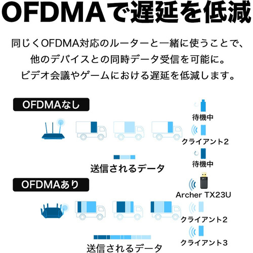 MU-MIMO&OFDMAテクノロジーが通信を効率化し、より快適なネットワーク環境を実現します。