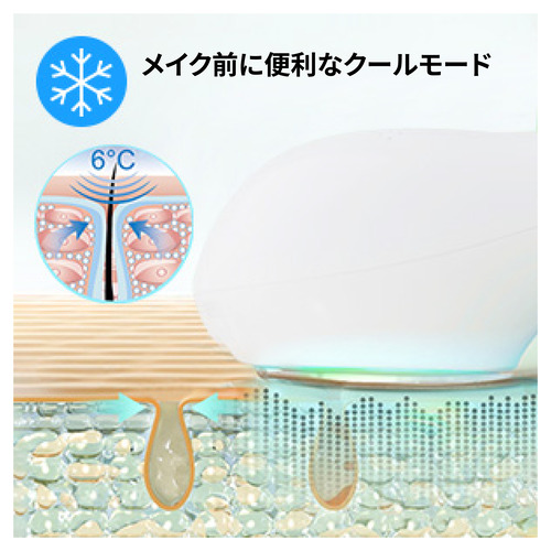 約16度の瞬間冷却で起き抜けの顔をひんやりケア。メイク前の5分間ケアで肌を引き締め、化粧ノリをサポートします。