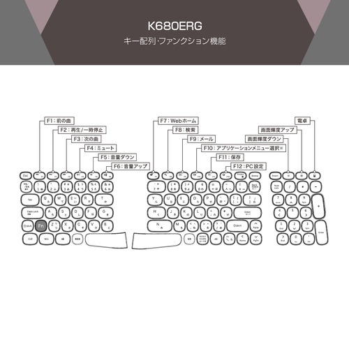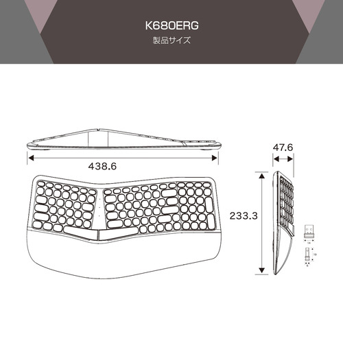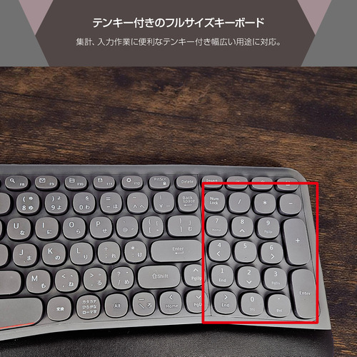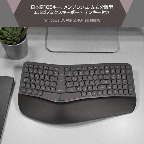 ユニーク K680ERG ワイヤレスキーボード テンキー付き 日本語105キー メンブレン エルゴノミクスデザイン Windows対応