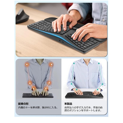 ●左右分離型のエルゴノミクスデザイン、手首を軽減