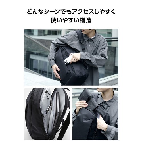 ●仕事と生活を自由に行き来する現代のライフスタイルに寄り添い、最適なデザインと機能を追求した、バックパックです。