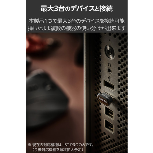 ●本製品1つで最大3台のデバイスを接続可能。パソコンやタブレットにレシーバーを挿したまま、複数の機器をワイヤレス接続して使い分けられます。