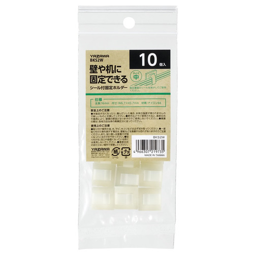 ヤザワ BKS2W シール付きケーブル固定ホルダー ケーブルを挟んで固定 10個入 ホワイト