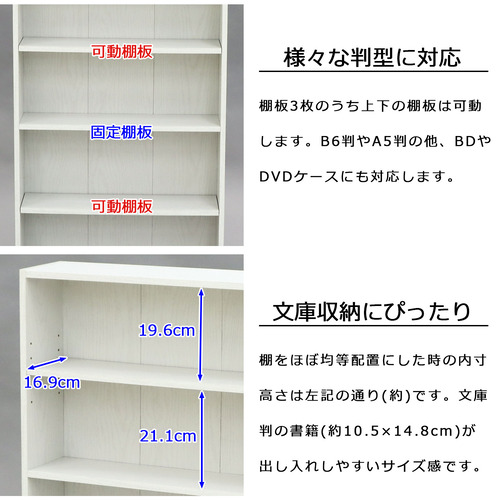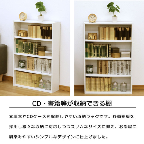 文庫・コミックス・CD/DVDなどを収納可能な、可動棚付き4段ブックラックです。