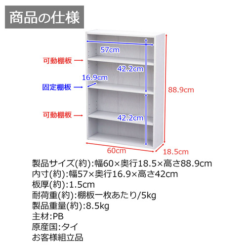 製品サイズ(約):幅60×奥行18.5×高さ88.9cm