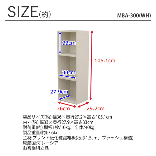エイ・アイ・エス A4ボックス 3段 幅36×奥行29.2×高さ105.1cm ホワイト MBA-300 WH