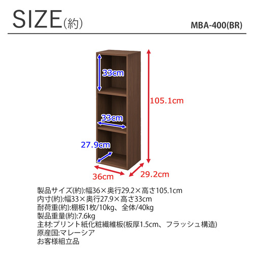 エイ・アイ・エス A4ボックス 3段 幅36×奥行29.2×高さ105.1cm ブラウン MBA-400 BR