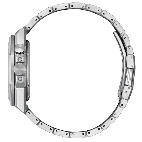 Series 8の現行ラインナップで唯一の20気圧防水仕様、ベゼルには両回転インナーベゼルを採用。文字板のオリジナルパターン、テーパーをかけたメタルバンドが、スポーティな表情とともに都会的でラグジュアリーな印象を際立たせます。