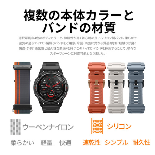 主な用途:健康モニタリング、トレイルランニング ランニング サイクリング ハイキングなど(150種類以上のスポーツ対応)