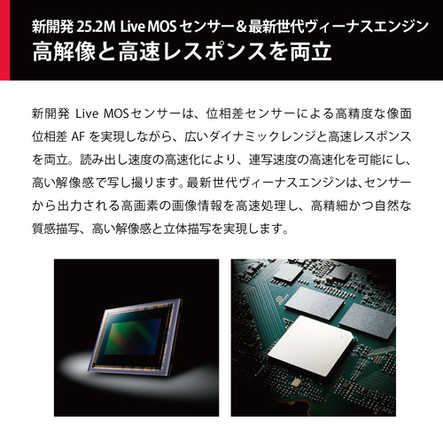 高解像と高速レスポンスを実現する新開発の25.2M Live MOSセンサー