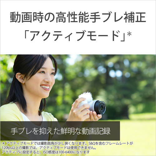 動画撮影時に手ブレ補正効果を向上させる、電子式手ブレ補正機能「アクティブモード」に対応し、歩きながらの手持ち撮影でも安定した動画を撮影できます。