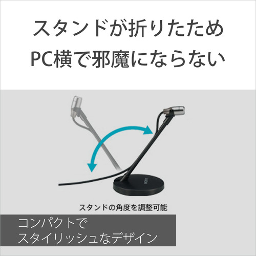 コンパクトでスタイリッシュなデザインなのでデスクトップでPCと接続してすっきりと使えます。マイクスタンドは折りたためる構造になっているので、持ち運びにも便利です。