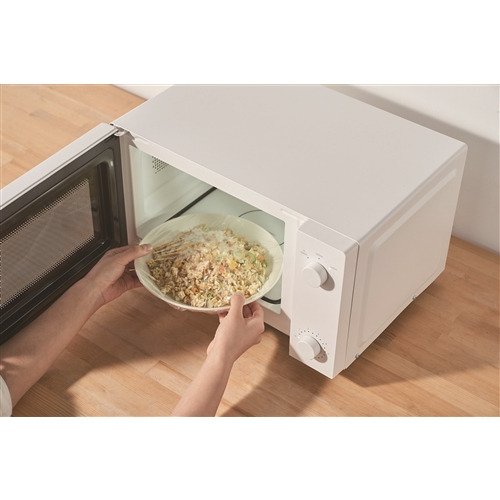 シンプルなのでどんなお部屋にも馴染みます。ダイヤルを回すと操作部のライトが白く光るので出力やタイマーが一目瞭然。庫内灯も白色にすることで、あたため中でも美しく統一感のあるデザインを追求しました。