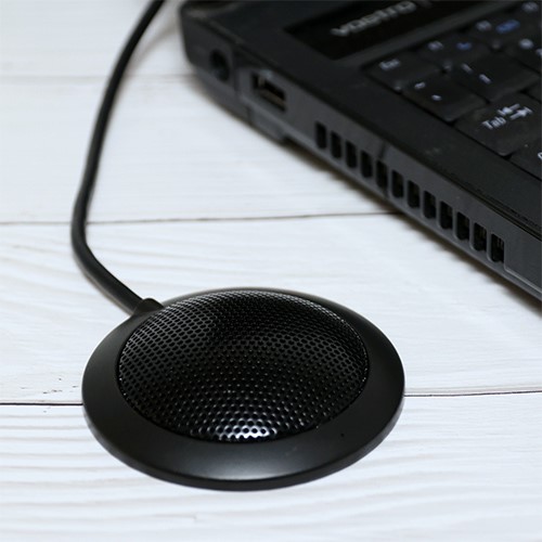 円形のマイク部は無指向性のため幅広く集音が可能。1〜4人程度の小規模なオンライン会議に最適です。離れた部署との会議の際や、テレワーク中のメンバーとのオンラインチャットなどで便利にご使用いただけます。また、スカイプなどの各オンライン通話に対応しています。