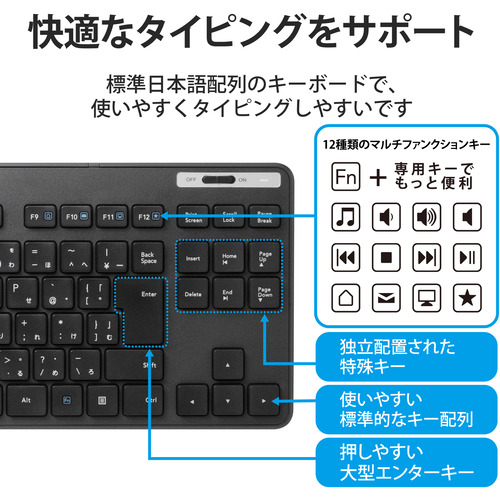 【推奨品】エレコム TK-FDM109TKBK 無線キーボード 薄型 メンブレン式 抗菌 コンパクトサイズ ブラック