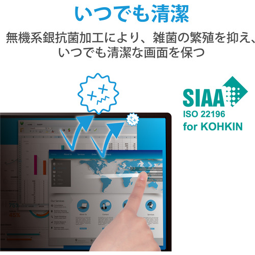 ●無機系銀抗菌加工により、雑菌の繁殖を抑え、いつでも清潔な画面を保ちます。