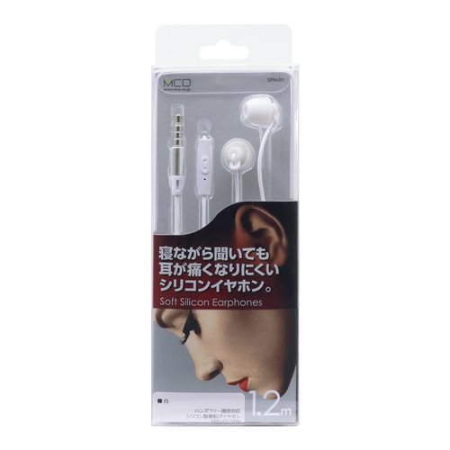 ミヨシ EPN-01/WH シリコン製寝転びイヤホン 白