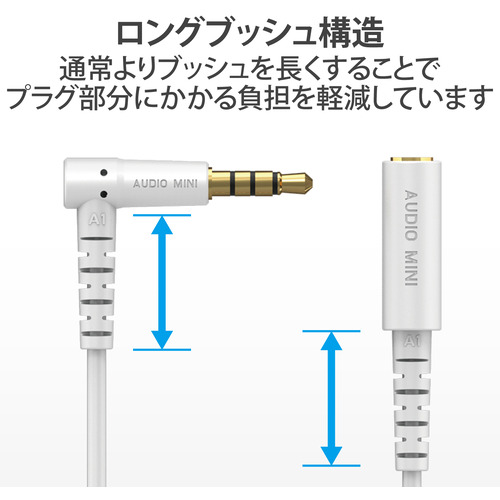 ●コネクターには、通常よりブッシュを長くすることでプラグ部分にかかる負担を軽減するロングブッシュ構造を採用しています。
