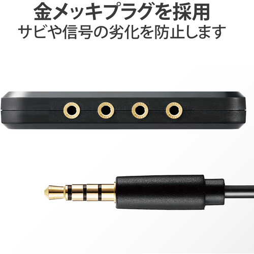 エレコム EHP-35AD03BK イヤホンジャック マルチイヤホンスプリッター 3分配 φ3.5mm 4極 ミニジャック×4 ボイスチャット 通話 ブラック