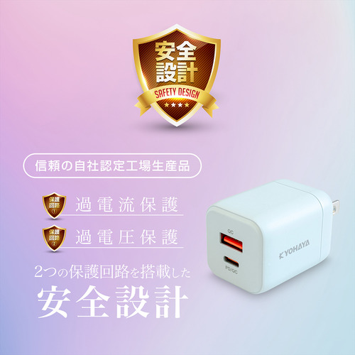 京ハヤ JKPD20G2WH 急速AC充電器 20W USB-Type-A/Type-C各1ポート PD/QC両対応 ホワイト