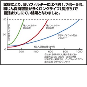 ●厚いフィルターなのでホコリがたくさん取れて、目詰まりしにくく長持ち。