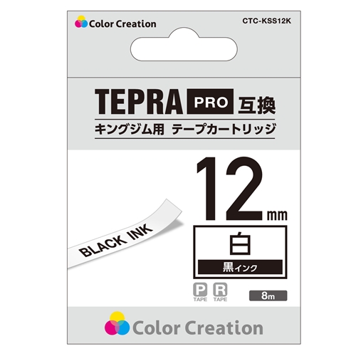 カラークリエーション CTC-KSS12K キングジム「テプラ」PROシリーズ用テープカートリッジ(白テープ/黒文字/12mm)