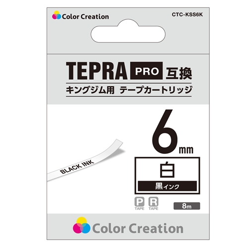 カラークリエーション CTC-KSS6K キングジム「テプラ」PROシリーズ用テープカートリッジ(白テープ/黒文字/6mm)