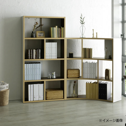 特徴的なアール形状の緩やかな曲線により、ゆったりとした空間を演出するパーテーションシェルフです。同シリーズのシェルフを複数台を組み合わせることで、波型・S型・C型とフレキシブルなレイアウトが可能です。