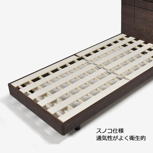 床板がすのこになっているため、通気性が良く衛生的です。※ダブル以上のサイズには中央部分に補助脚が付きます。