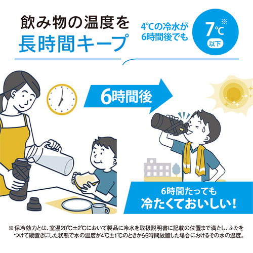 「業界初!※2 せんとパッキンをひとつにした「シームレスせん」」(※2 せんとパッキンをひとつにしたせん構造の技術。ステンレスボトルにおいて。2020 年7 月30 日発表による 当社調べ。)パッキンをはずして洗わなくていいから、 「お手入れカンタン」「つけ忘れない」「なくさない」キャップとパッキンもひとつになってさらに洗いやすい。内側コーティングで汚れがつきにくい 「ラクリアコート」撥水性が高く、表面がなめらかな本体内側のコーティングは、汚れや飲み物のニオイがつきにくいから、サッと洗えて毎日のお手入れラクラク。「本体丸洗いOK※3」(※3 水中に放置しないでください)さらにポーチレスだから、ポーチの洗濯が不要!