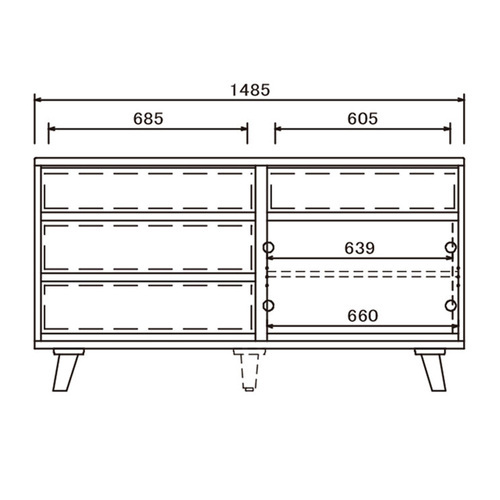 サイズ(単位:mm):幅1482x奥行400x高さ805 脚高140