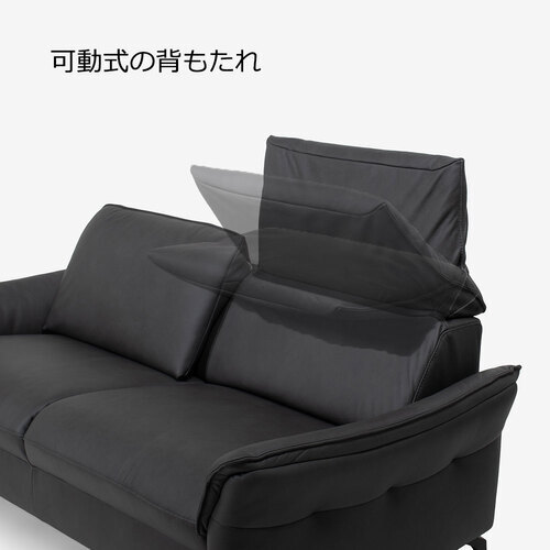 可動式のバックレストとアームレスト、シンプルなフォルムと金属脚の組合せ。デザイン性と機能性を完璧に融合させたヒモラ社(ドイツ)の高品質なソファです。