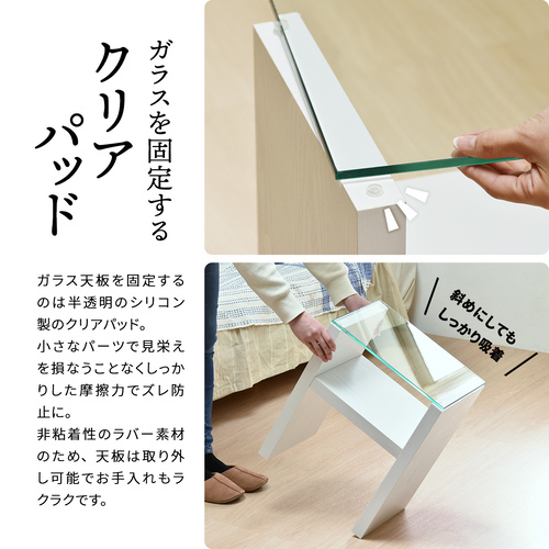 素材:【天板】8mm強化ガラス 【棚板/側板】中質繊維板にPVC貼り(塩化ビニルシート)