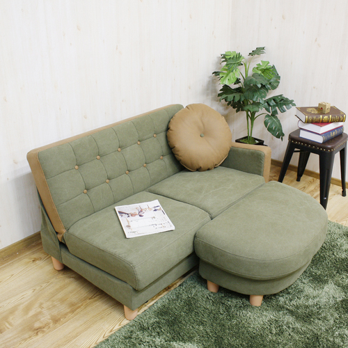 後藤家具物産 カウチソファ「サリー」グリーン SO-05KDX-GR 座面下には大容量の収納庫付のコンパクトカウチソファー!帆布生地グリーン色!