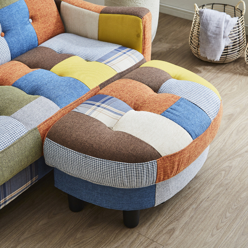 カウチソファ「サリー」パッチワーク色 DXSO-05KDXPW 座面下には大容量の収納庫付のコンパクトカウチソファー!パッチワーク色!