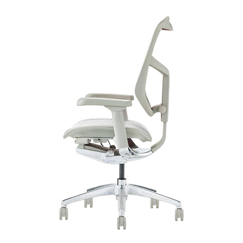 ●デスクワーク時に負担のかかりやすい腰へのサポートに重点を置き、人間工学を基にして開発・設計された多機能チェア「エルゴヒューマン」。そのシリーズのローエンドモデル。エルゴヒューマンの基本的な機能を搭載した、背面一体型のモデル。ヘッドレスト無し。