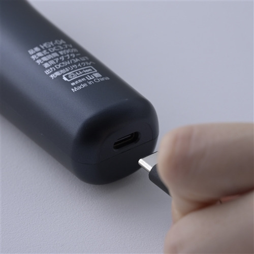 こでも手軽に充電できる用にUSB Type-Cを採用。満充電時間:約90分、使用可能時間:約60分。※ACアダプターは同梱されておりません。ご家庭にある適合仕様のものをご使用いただくか、別売品をお買い求めください。