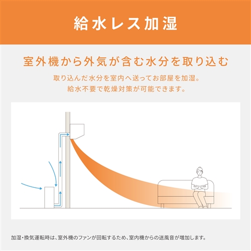 ●冷暖房だけでなく「換気」「加湿」もできるエアコン ・ナノイーXに合わせて給排気換気で空気をキレイに ・給水レス加湿で暖房しながらお部屋のうるおいキープ