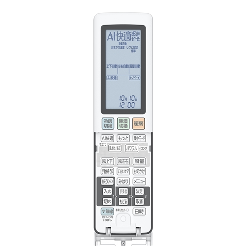 リモコン:新・AI快適おまかせ(おまかせ温度設定)、お知らせ機能(電気代等)、バックライト液晶、0.5℃刻み