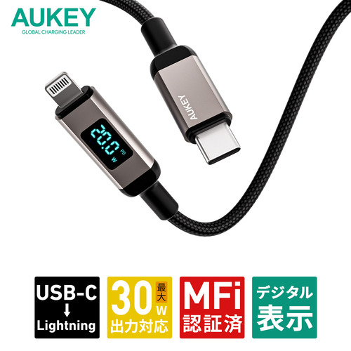 AUKEY CB-CL14-BK 急速充電対応ケーブル Impulse series Digital Display [Type-C to Lightning] 1m ブラック