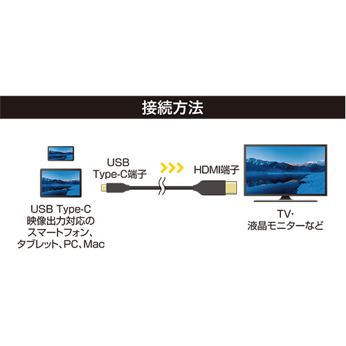 ミヨシ USD-FH10/BK USB Type-C HDMI変換ケーブル 1m ブラック USDFH10/BK