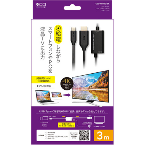 ミヨシ USD-PFH30/BK USB PD対応 USB Type-C HDMI変換ケーブル 3m ブラック