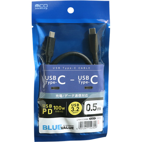ミヨシ UYM-CC35BK USB3.2ケーブル USB PD 100W充電対応 充電/データ通信 Type-Cタイプ ブラック UYMCC35BK