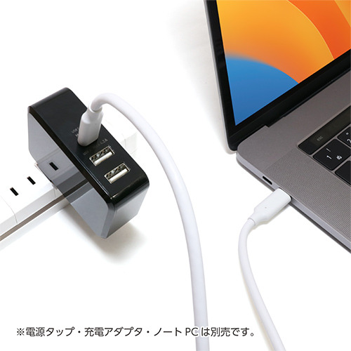 給電だけでなく、データの通信にも対応。USB3.2Gen1準拠で最大5Gbpsのデータ通信が可能です。これ1本でUSB機器の充電、パソコンとのデータ通信など、幅広く使えます。