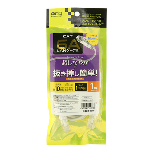 ミヨシ C6A-N010WH カテゴリー6A 抜きやすい LANケーブル 1m 白 C6AN010WH
