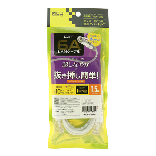 【推奨品】ミヨシ C6A-N015WH カテゴリー6A 抜きやすい LANケーブル 1.5m 白 C6AN015WH