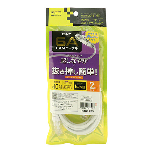 ミヨシ C6A-N020WH カテゴリー6A 抜きやすい LANケーブル 2m 白 C6AN020WH