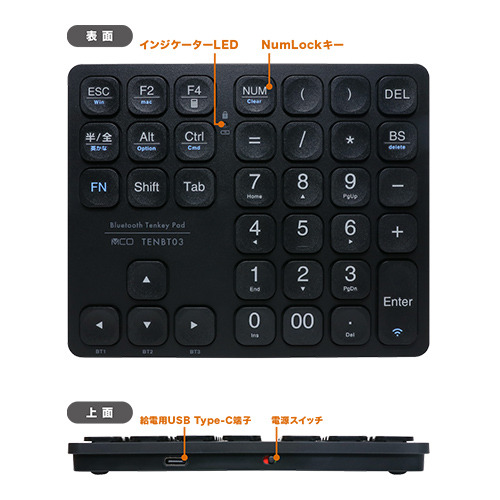 ミヨシ TENBT03/BK 十字キー付きBluetoothテンキー ブラック