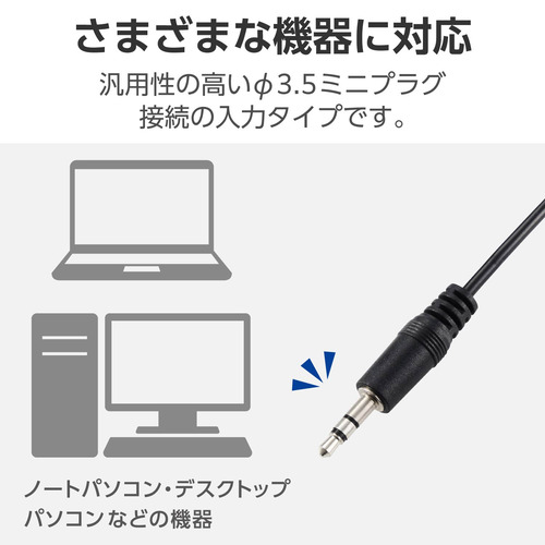 ●汎用性の高いΦ3.5ミニプラグ接続の入力タイプなので、パソコンだけでなくさまざまな機器に接続可能です。